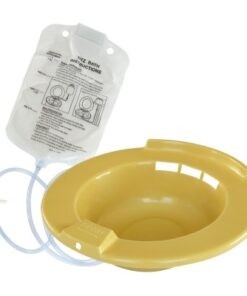 Conocido también como Baño de asiento o Tina para lavado de hemorroides,está fabricado en polipropileno.Incluye:Una bolsa con asa para colgarse del toallero, fabricada en PVC y con capacidad de 2000ml, tiene integrada una sonda de 1.5m y pinza para regular la cantidad y el flujo.