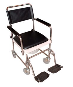 DetalleCódigoModeloNegroR208101R2MIL-SCA-NChasis de tubular de Acero Acabado Cromado, con respaldo en Tapicería Negra.Con asiento desmontable tipo WC y recipiente con tapa removible para facilitar su aseo.Además cuenta con tapa asiento adicional tapizada para disimular su función de Cómodo.Brazos abatibles hacia abajo, ideales para trasladar lateralmente al Usuario de un lugar a otro.Cuenta con cuatro ruedas de 5?, las dos traseras equipadas con frenos de presión.Soportes descansapies desmontables abatibles con textura antiderrapante.Sistema desarmable que optimiza al máximo el costo del flete.Requiere de ensamble mínimo.